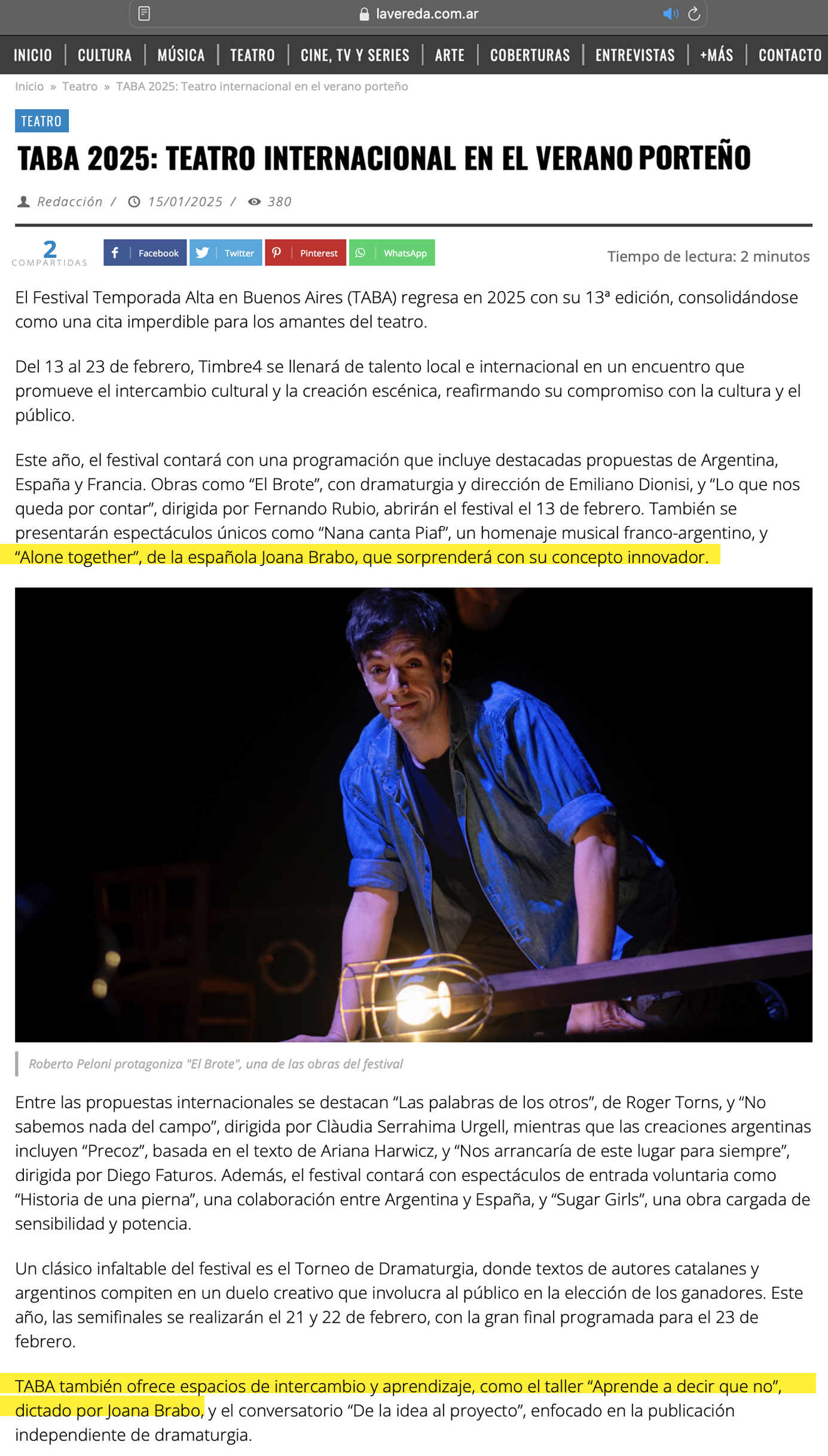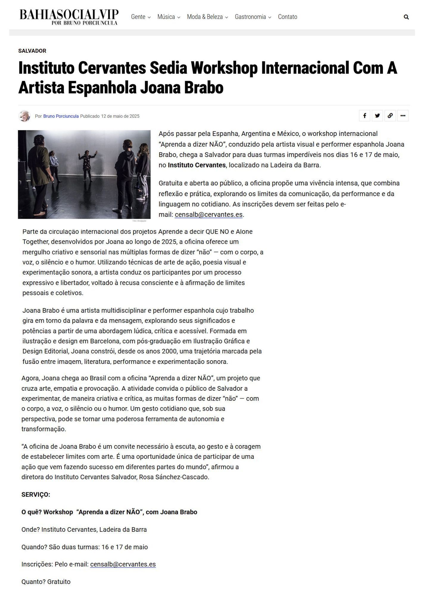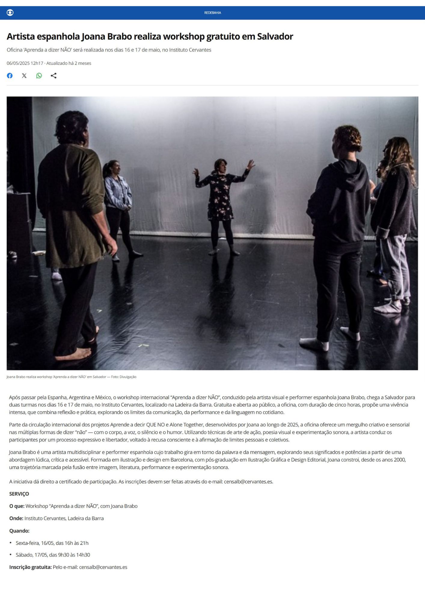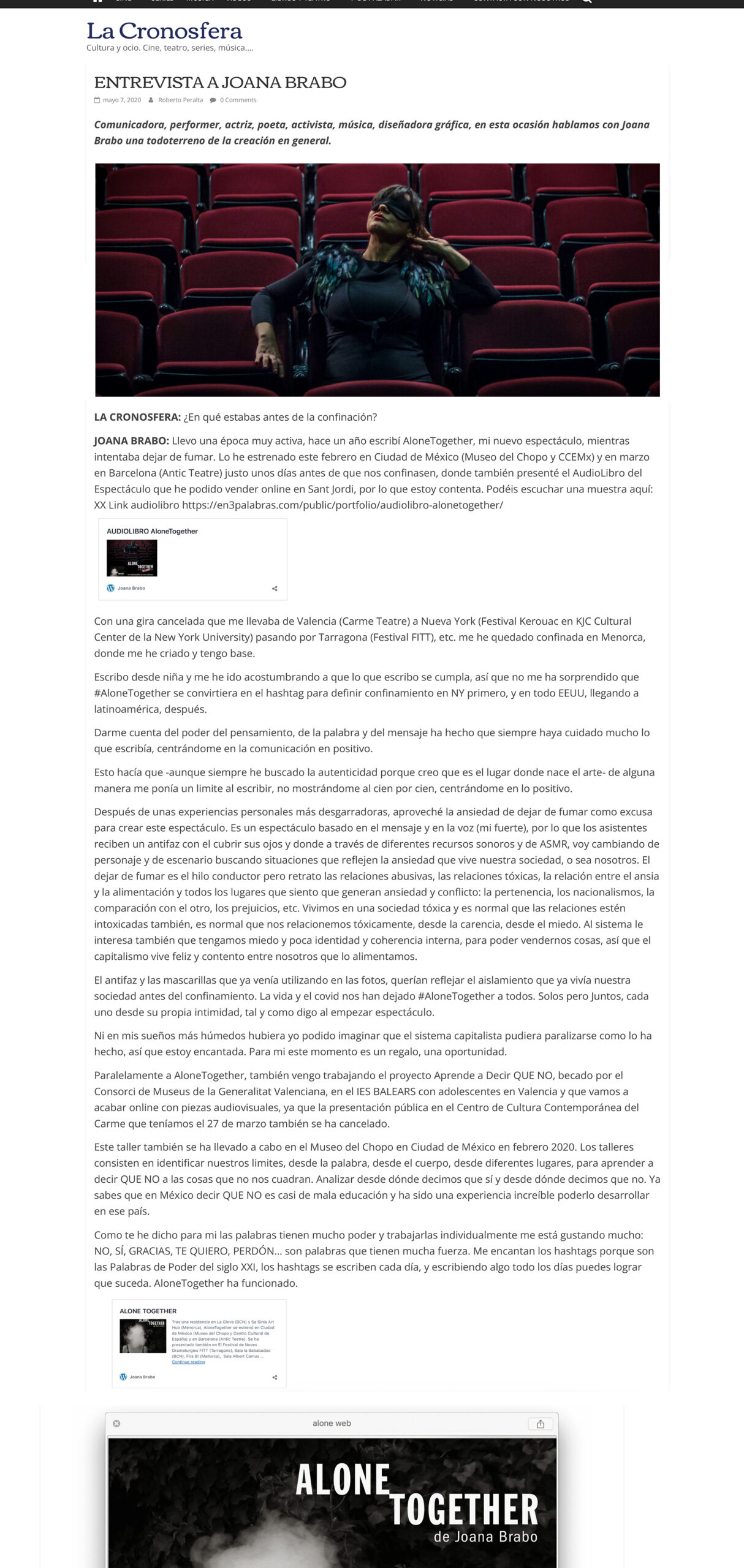 En la actualidad, Brabo presenta sus proyectos Aprende a decir QUE NO y AloneTogether en distintos contextos y espacios internacionales, ampliando su investigación sobre la palabra, el cuerpo y la comunicación.