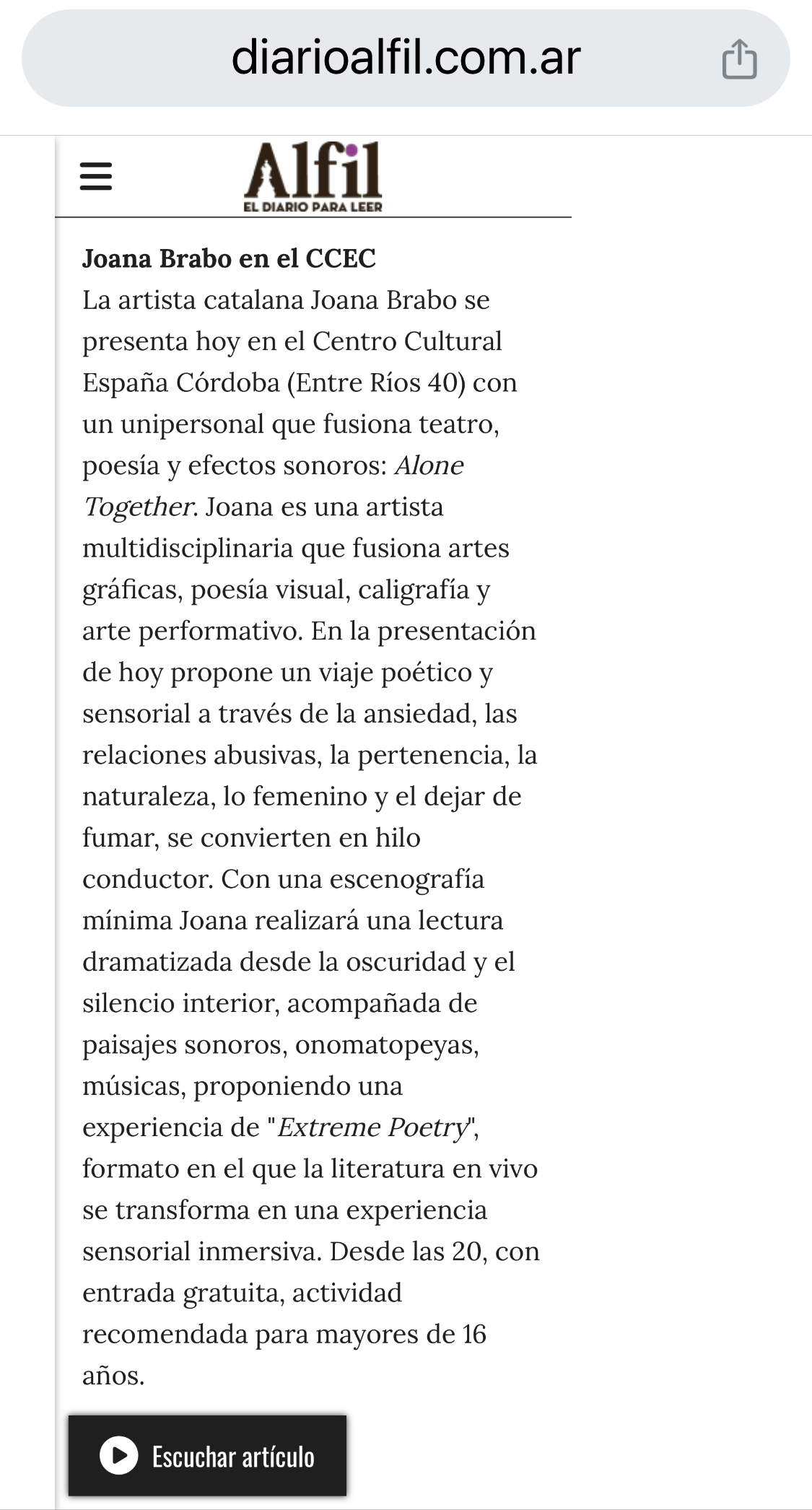2025 / Centro Cultural España, Córdoba, ARG / AloneTogether / Performance.
