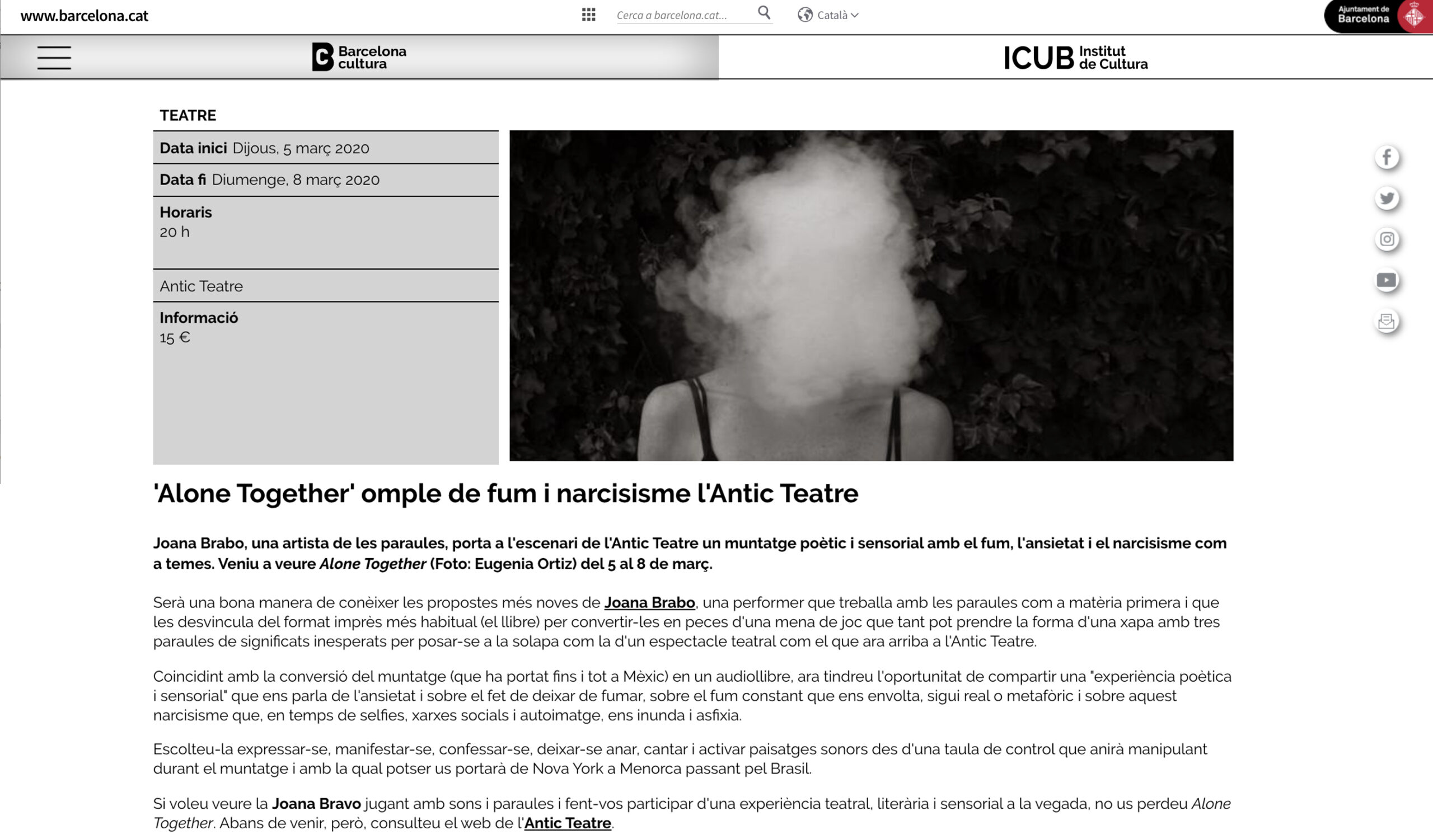 2020 / Antic Teatre, Barcelona, ESP / AloneTogether / Performance.