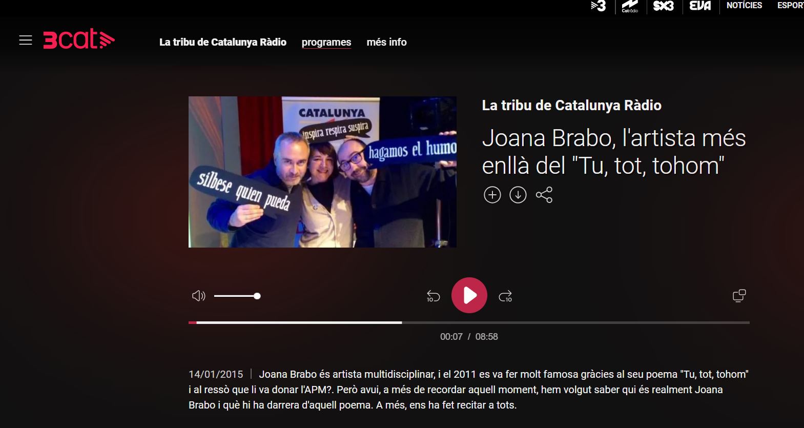 Algunos de sus proyectos más reconocidos incluyen Poesia en Moviment, en los autobuses de Tarragona, proyecto comisariado por Künstainer Collective quien lo define como ‘la primera exposición permanente en un medio de transporte’ o su colaboración en la sección de poesía del programa L’hora del Lector (Canal 33), donde su poema fonético TUTUTOTHOM se convirtió en un fenómeno viral sin precedentes.