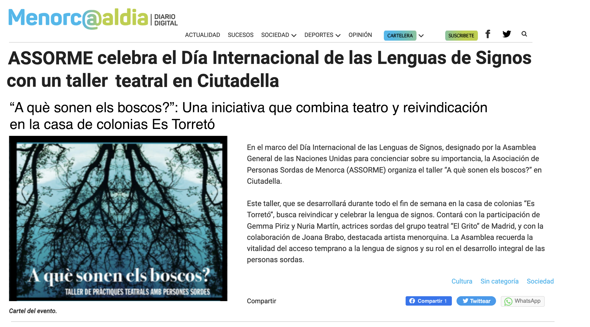 2023 / Ajut de minimis Arts Visuals / A qué suenan los bosques / Consell Insular de Menorca, ESP.