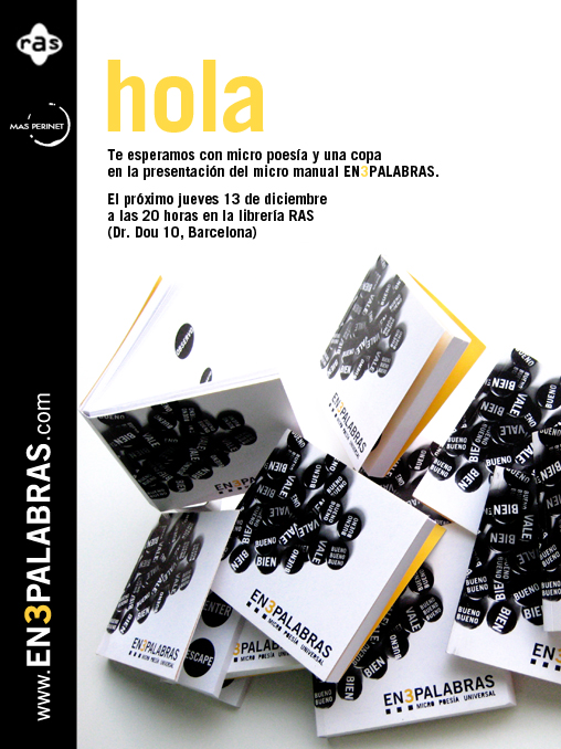EN3PALABRAS es una apuesta poética que empezó como un juego y, poco a poco, se convirtió en un paraguas bajo el que publicar diferentes soportes. El objetivo era por un lado transmitir mensajes en positivo y por el otro, desvincular la palabra y la poesía del formato libro.