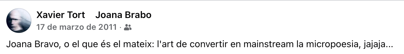 Justo antes de la primavera del 15M, en 2011, Joana Brabo colaboraba en L’hora del lector de TV3, el programa literario de Emili Manzano. Junto a Jaume Pons Alorda, capitaneaba la sección poética.
